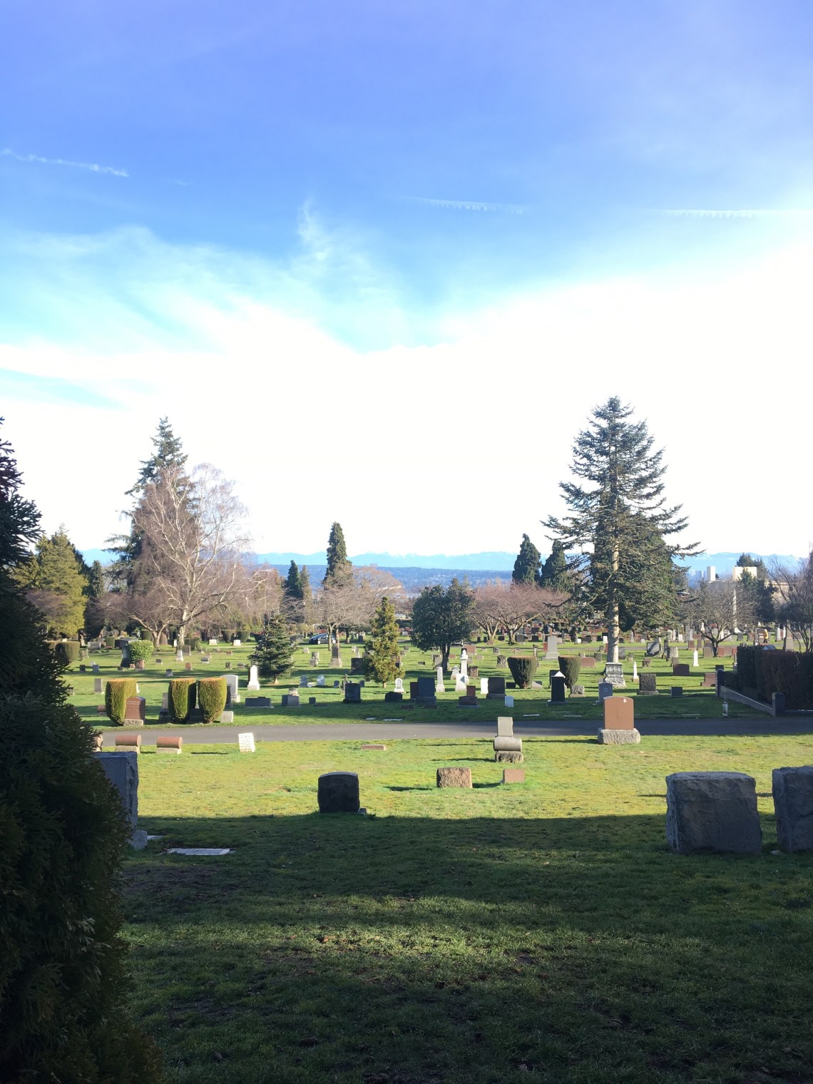 We parked on the opposite side of Volunteer Park and walked all away across to the northern part of the park. When I looked at google maps, I thought it was going to be a nice walk across. Which for the most part it was until we hit the fence requiring us to walk down into the neighborhood to get us to the cemetery entrance.