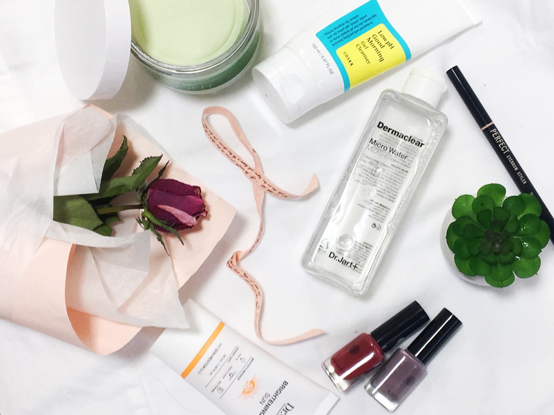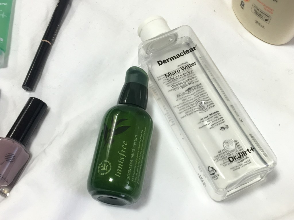The second weekend in March, I traveled up to Seoul with a couple of friends I made during EPIK Orientation. We walked around Myeongdong and while we were there I asked to stop in Innisfree and Olive Young. At Innisfree I got the Green Tea Seed Serum. It came in a gift set that included a Minion cup and figurine. It was the same prices as just getting the serum, so I went with the gift set. At Olive Young, I really needed to get some makeup remover. So one of the clerks recommended I get Dr. Jart+ Mircro Water. It also came in a set, one big bottle and travel size container. I typically use this to remove my eye makeup. It’s not harsh and actually does a great job taking off my eye makeup including waterproof mascara.
