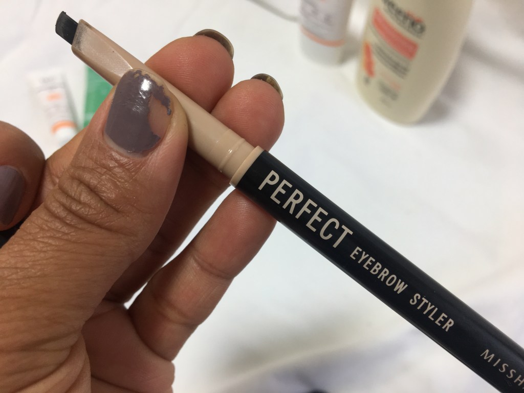 Right before the end of the month, I finally reach the end of my eyebrow pencil, so I made a point to research a bit and decided to try some Missha makeup. The Missha store is just a half block away from the Olive Young in my neighborhood. In the store, they had several different kinds of brow pencils, but I decided on the Perfect Eyebrow Styler since it was the only other one that came in a dark, almost black, shade. While I was there I also picked up a couple nail polishes so I could do my nails.