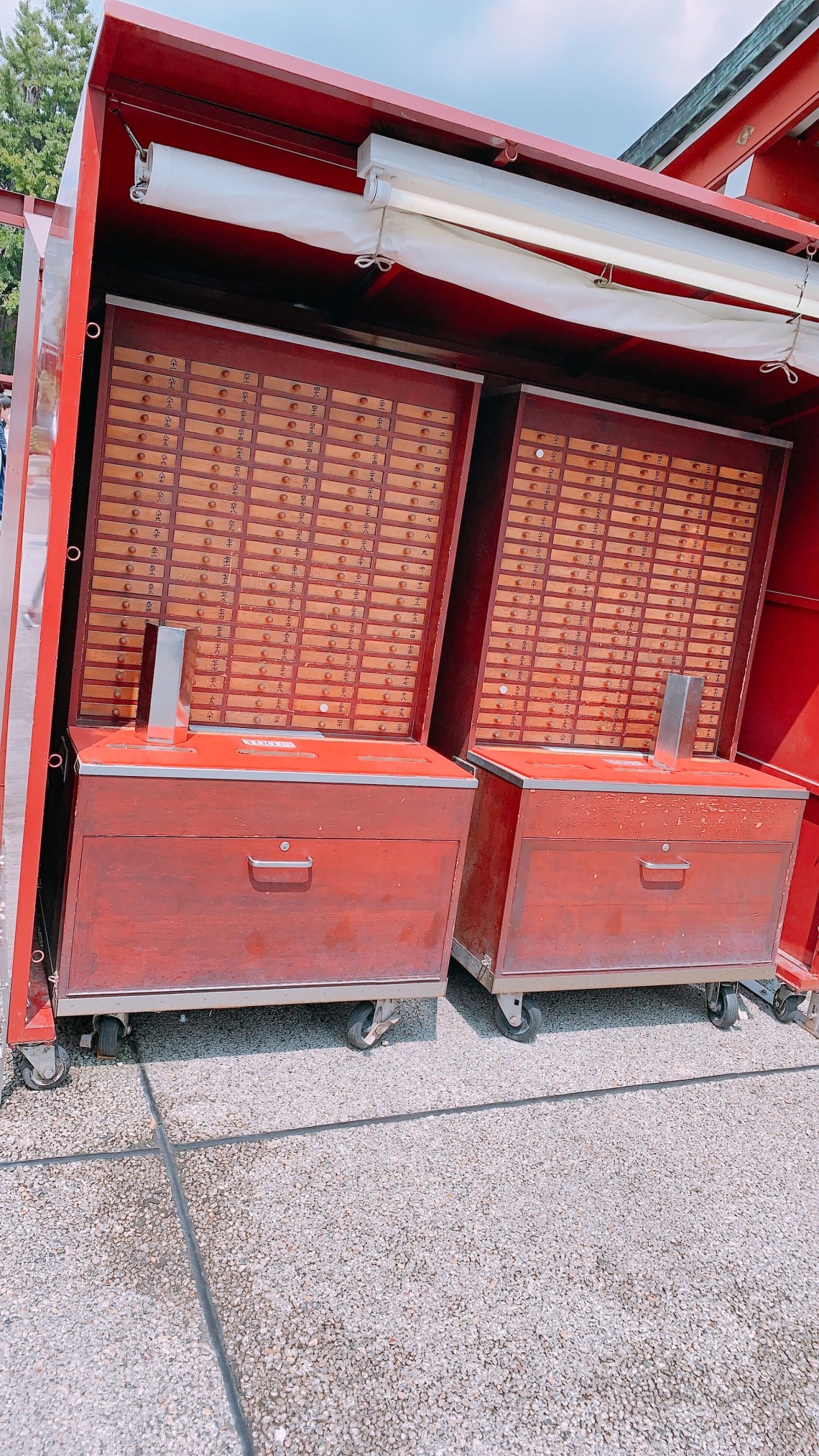 I was even able to get a fortune. Slide in 100 yen in the coin collector, shake the bin and pull out one of the sticks. Then match the stick number (kanji characters) to the characters on the drawers and pull out you fortune sheet.