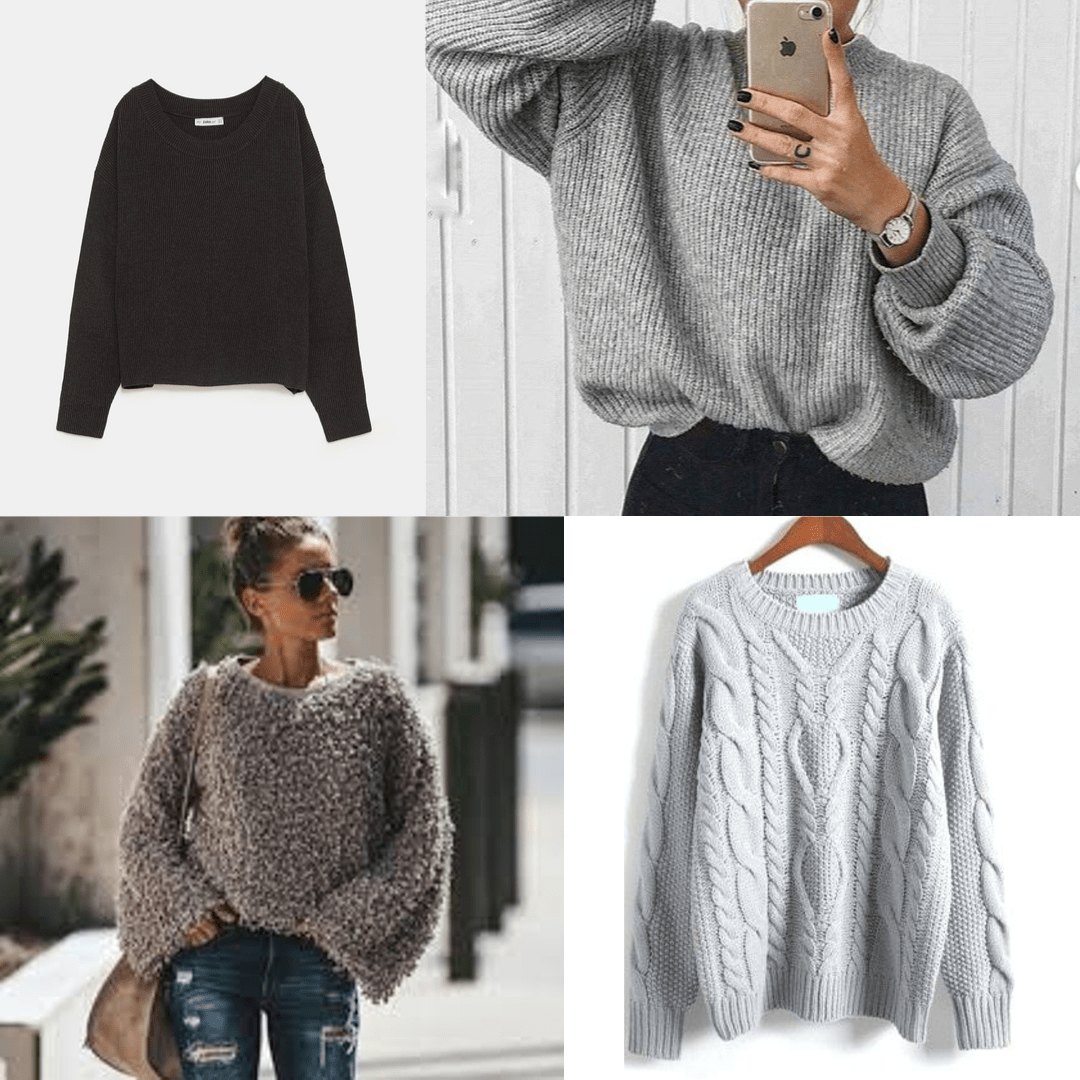 Grey Oversized girls sweater // Long Sleeve Soft Polar Fleece Jump // Celine CREW NECK SWEATER IN CASHMERE // Shein Grey Long Sleeve Batwing Cable Knit Sweater