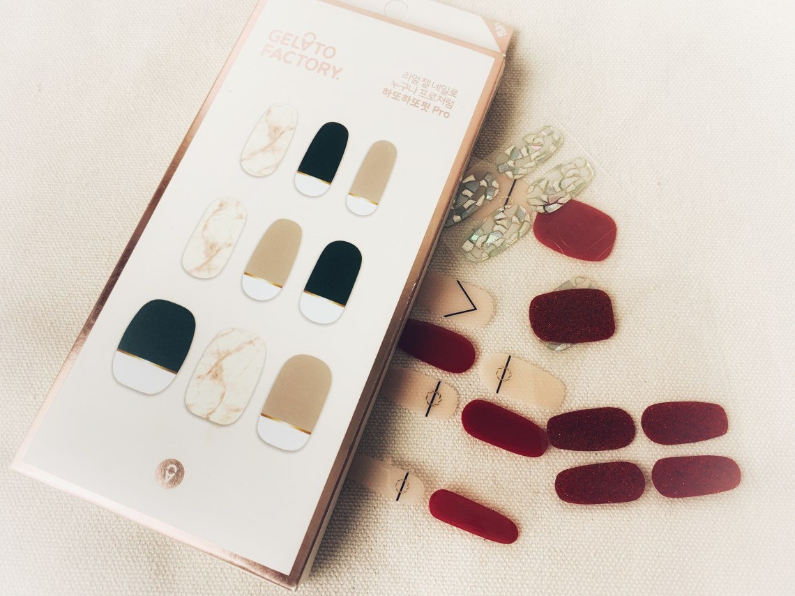 These are my favorite gel stickers I’ve found here in Korea. They work even far better than the ones in the states and they last far longer. Typically they last about a week and a half for me. They stick on very easily and have a lot of sizes inside each packaging to fit all your fingers.